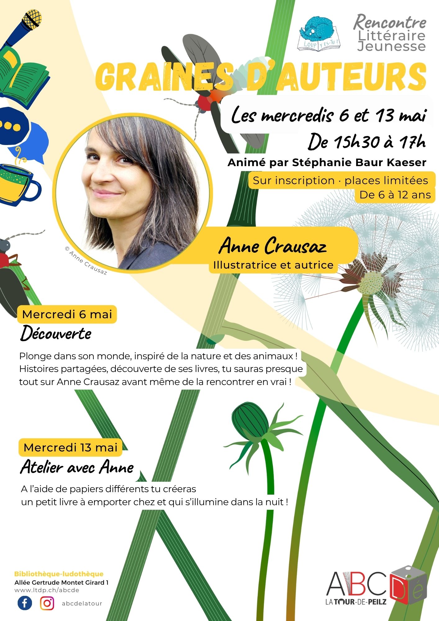 Deux ateliers pour découvrir l’univers graphique et poétique de l’autrice et illustratrice Anne Crausaz.