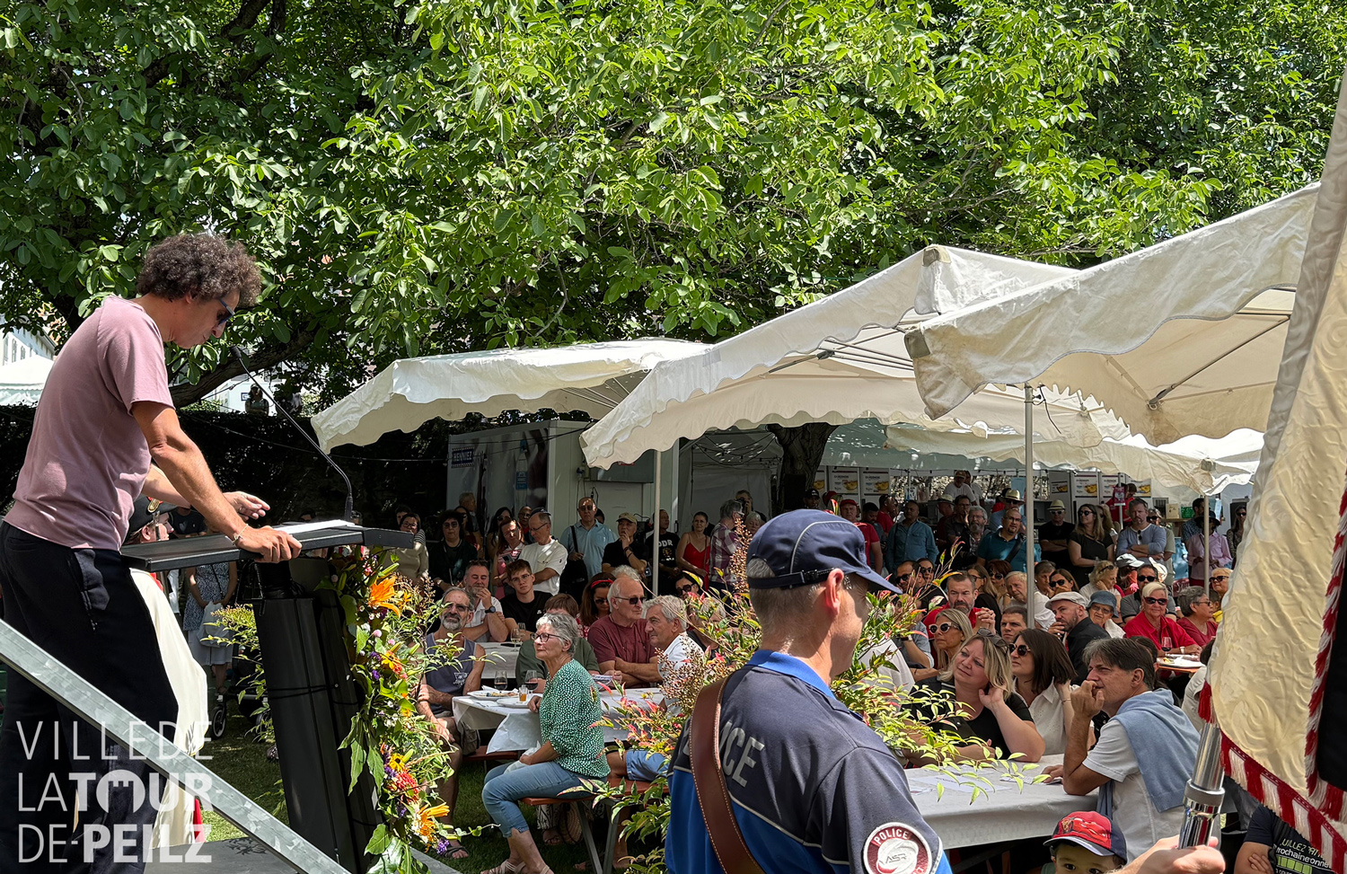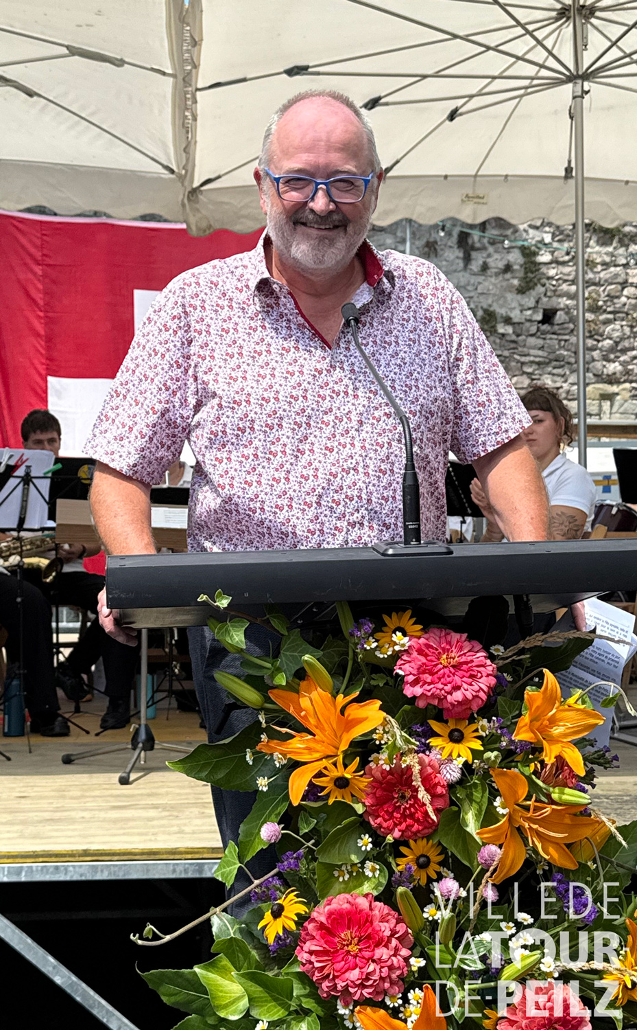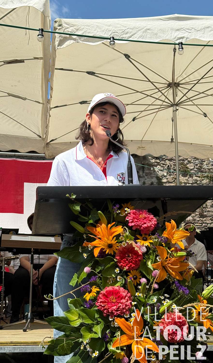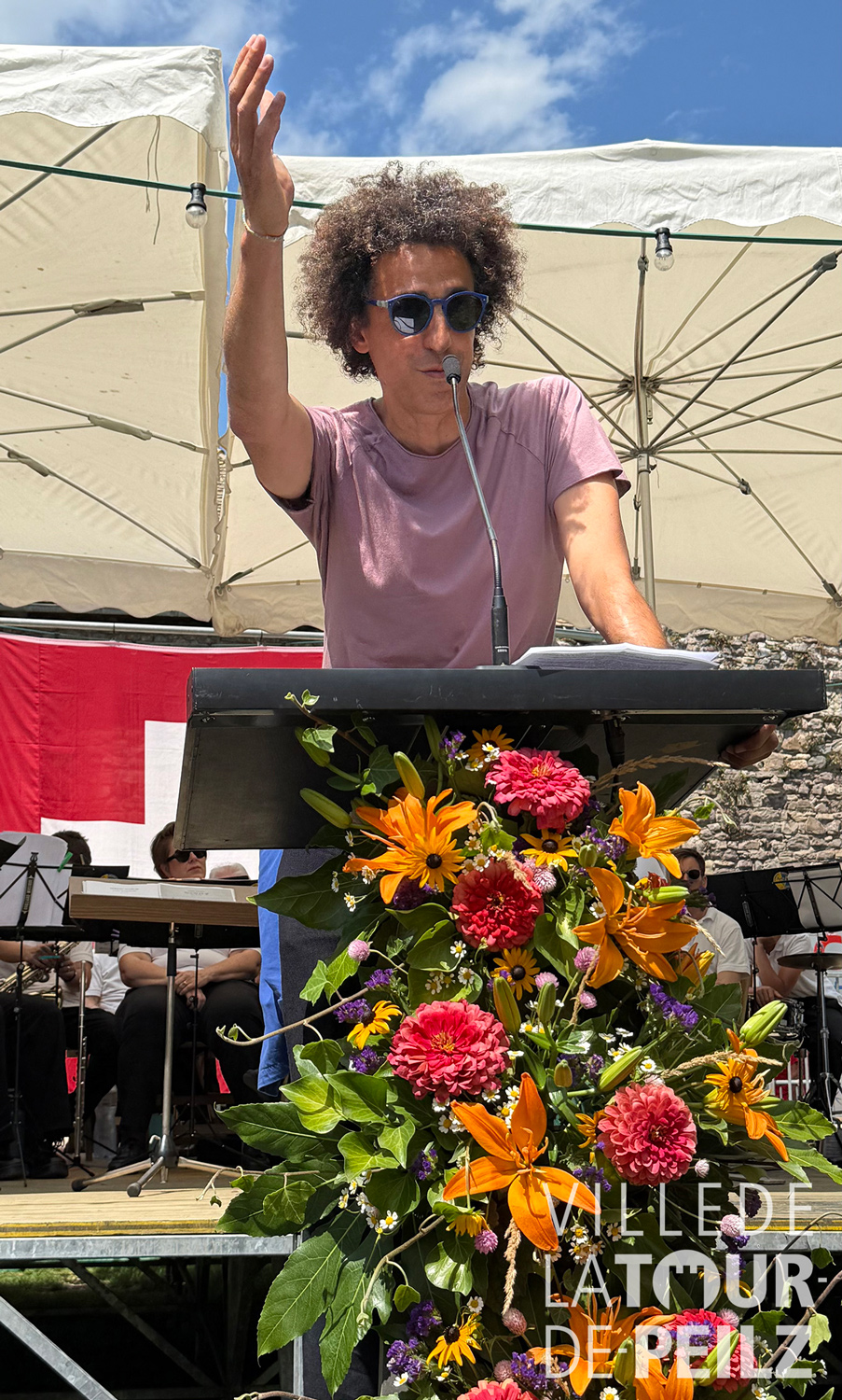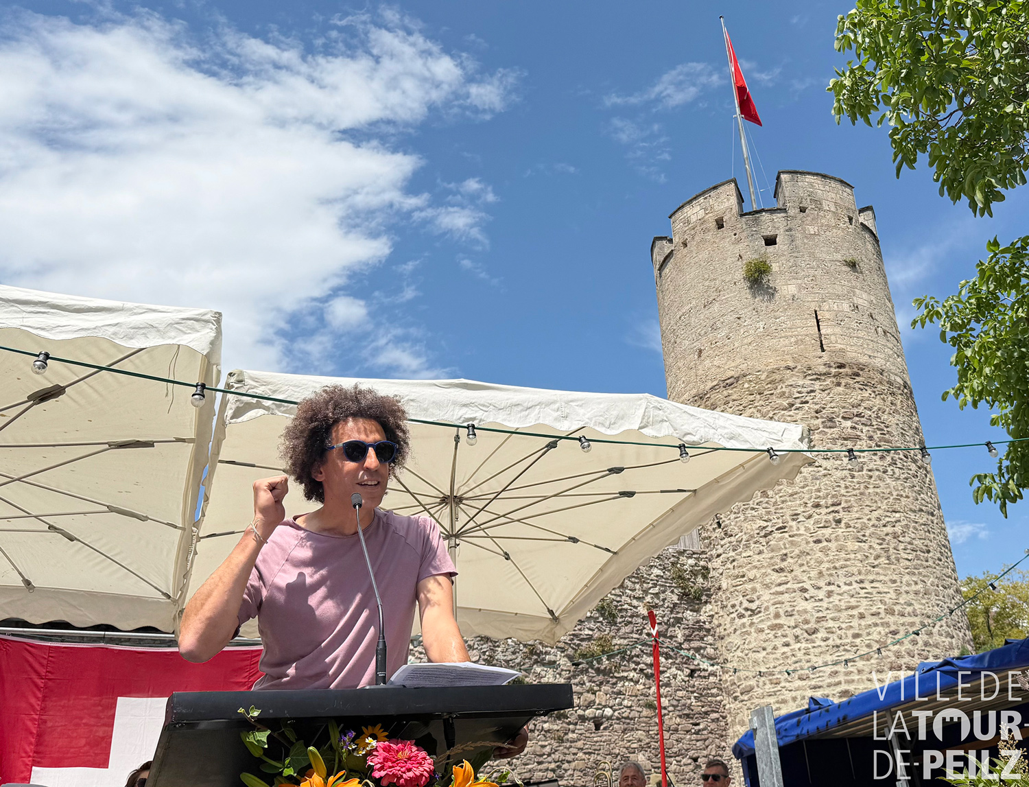 La partie officielle du vendredi 1er août a réuni la Municipalité, le Président du Conseil communal M. Yvan Krähenbühl, les Bourgeoise et Bourgeois d’honneur Dominique et Claude de Ribaupierre, une délégation de la Mairie d’Ornans et la population venus écouter le très touchant discours prononcé cette année par M. Hadi Barkat, directeur et fondateur de la maison d’édition Helvetiq, et le pacte de 1291 lu par Mme Jemima Zepeda, membre de la société de sauvetage Le Doyen, suivis du cantique suisse joué par la Lyre de Vevey.